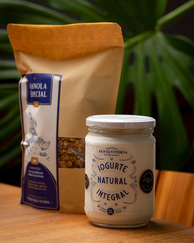 Iogurte natural artesanal + Granola crocante. Uma combinação simples e nutritiva, entregue todos os meses para quem valoriza o sabor do natural.