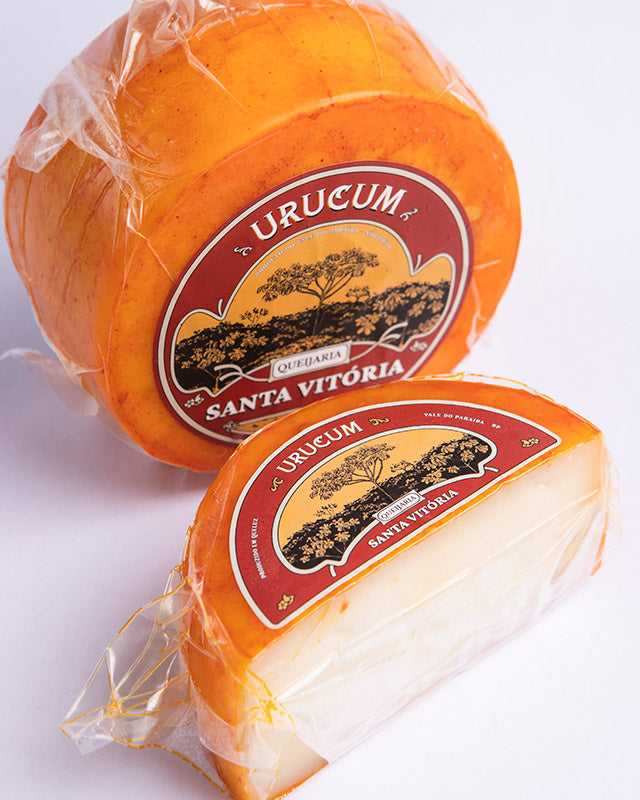 A cor alaranjada da casca se deve ao uso de solução natural de urucum. Ao final dos 30 dias de maturação, o queijo Urucum apresenta consistência extremamente macia e média intensidade de sabor. Já o aroma, é deliciosamente amanteigado.